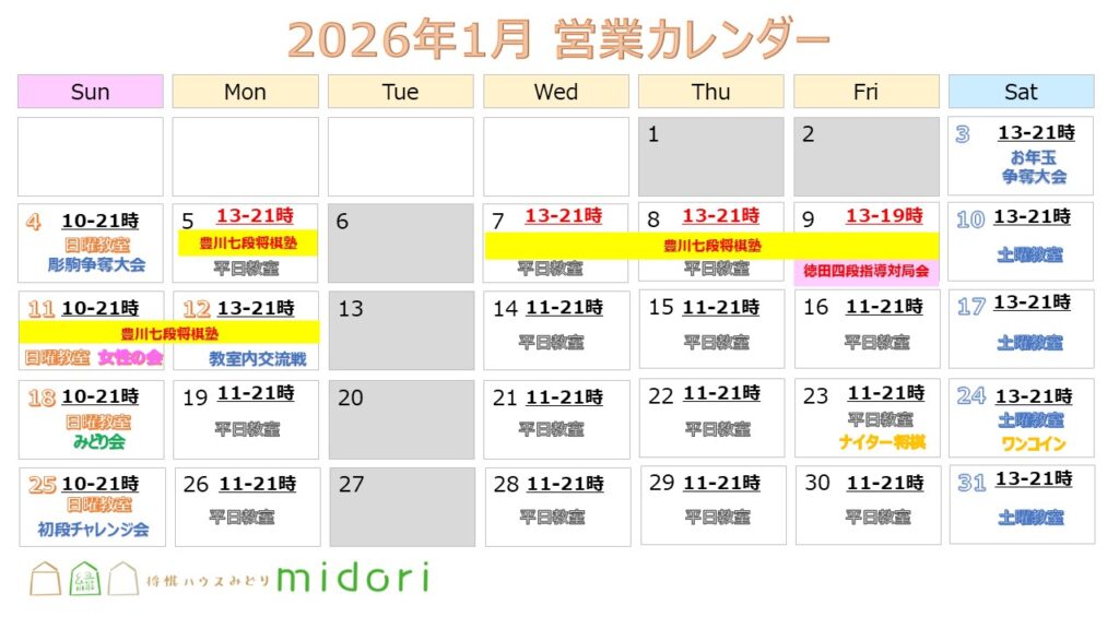 イベント予定(2026年1月の営業カレンダー&イベント予定)